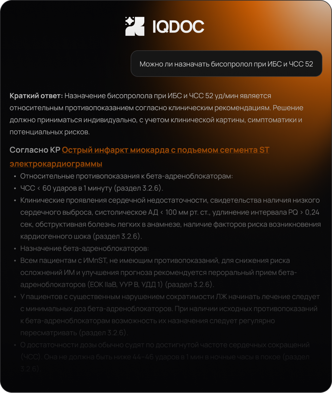 Ответы IQDOC основаны на клинических рекомендациях Минздрава и других официальных документах РФ, поэтому на них можно опереться при назначении.